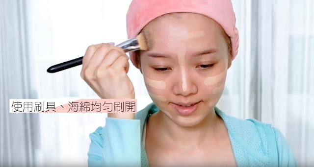 接著使用海綿或是粉底刷將其均勻刷開
